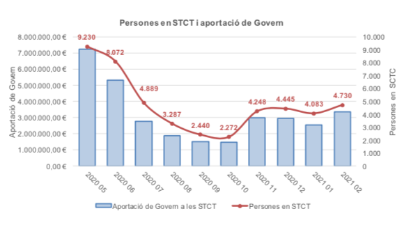 El mes de novembre del 2020, un total de 4.248 assalariats (2.272 el mes d’octubre) s’han vist afectats per les Suspensions Temporals de Contractes de Treball arran de la Covid-19, i han vist complementat el salari percebut per l’empresa amb l’aportació econòmica per part del Govern.